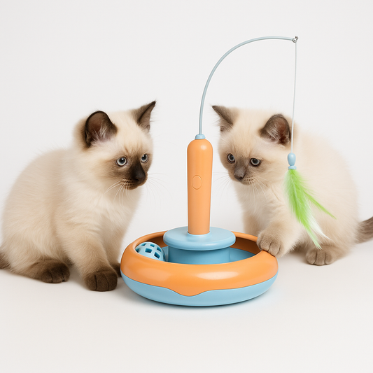 Juguete Interactivo para Gatos – Placa Giratoria con Bola y Pluma